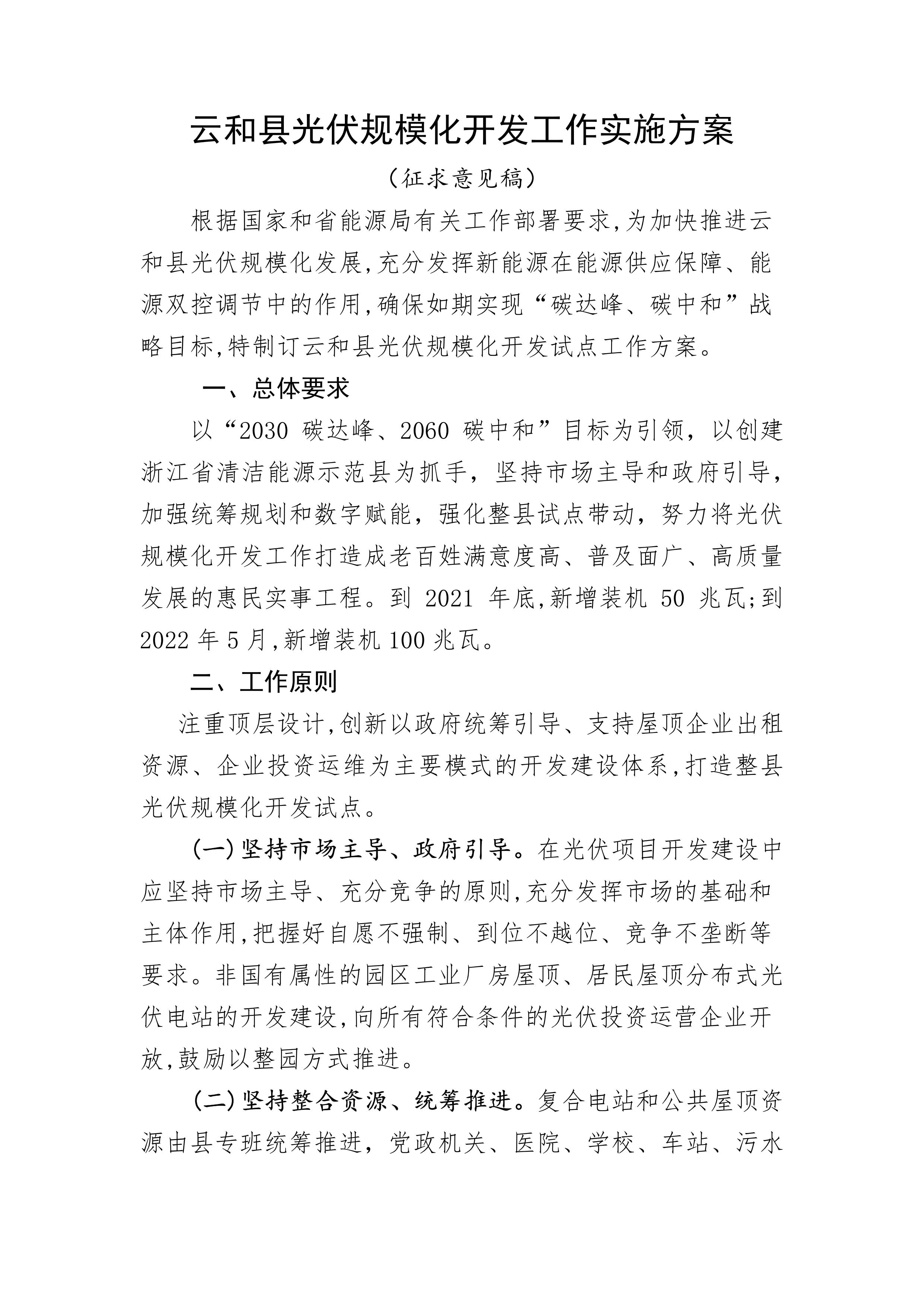 【政策通知】浙江云和:云和縣光伏規模化開發工作實施方案(征求意見稿)