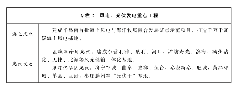 1、風(fēng)電。以海上風(fēng)電為主戰(zhàn)場(chǎng),積極推進(jìn)風(fēng)電開發(fā)。加快發(fā)展海上風(fēng)電。按照統(tǒng)一規(guī)劃、分步實(shí)施的總體思路,堅(jiān)持能建盡建原則,以渤中、半島南、半島北三大片區(qū)為重點(diǎn),充分利用海上風(fēng)電資源,打造千萬千瓦級(jí)海上風(fēng)電基地。推進(jìn)海上風(fēng)電與海洋牧場(chǎng)融合發(fā)展試點(diǎn)示范,加快啟動(dòng)平價(jià)海上風(fēng)電項(xiàng)目建設(shè),推動(dòng)海上風(fēng)電規(guī)模化發(fā)展。科學(xué)布局陸上風(fēng)電。適度有序推進(jìn)陸上風(fēng)電開發(fā)建設(shè),重點(diǎn)打造魯北鹽堿灘涂地千萬千瓦級(jí)風(fēng)光儲(chǔ)輸一體化基地。到2025年,風(fēng)電裝機(jī)規(guī)模達(dá)到2500萬千瓦。